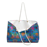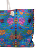 A vibrant custom printed handbag inspired by a bouquet roses and decorative "Manajel" stitches originally hand stitched onto a Palestinian "thobe" (traditional dress) by masterful Palestinian artisans. A stand out accessory for all occasions right in time for summer.