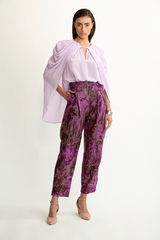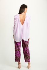 Silk V-neck blouse with draped pleated royal cape that's romantic with a touch of drama. This blouse moves beautifully whether it is worn tucked in or loose. Available in other colors upon request.